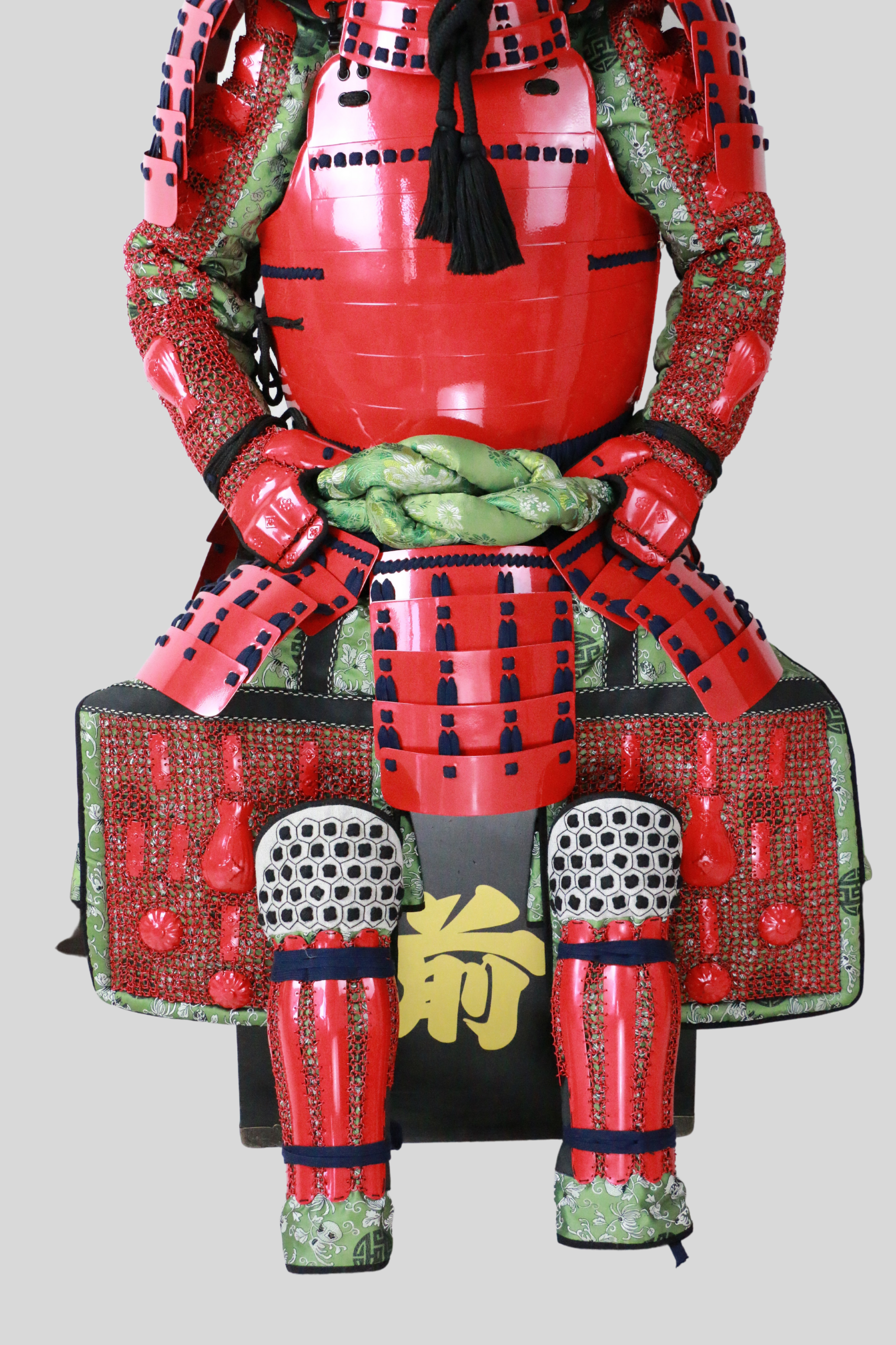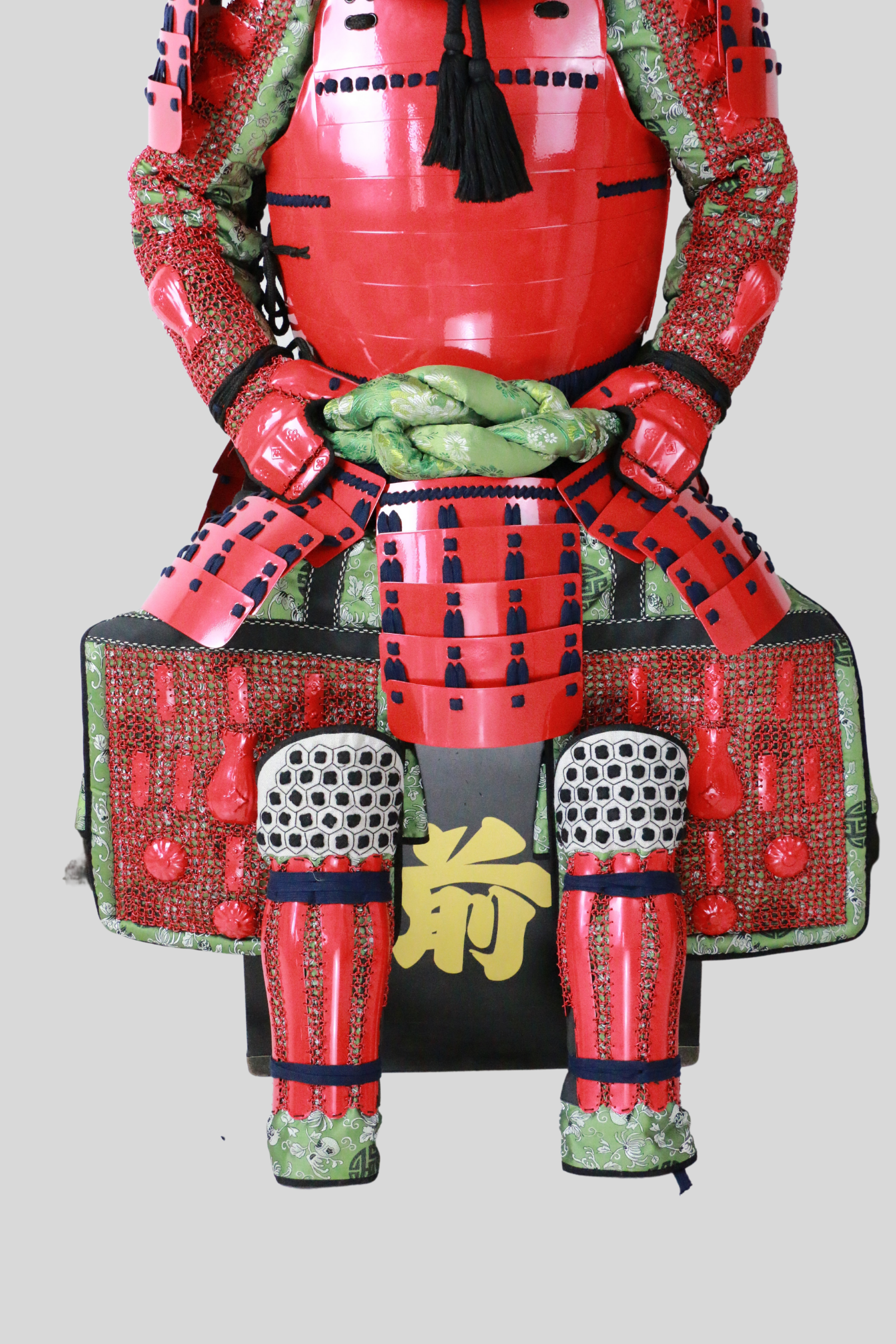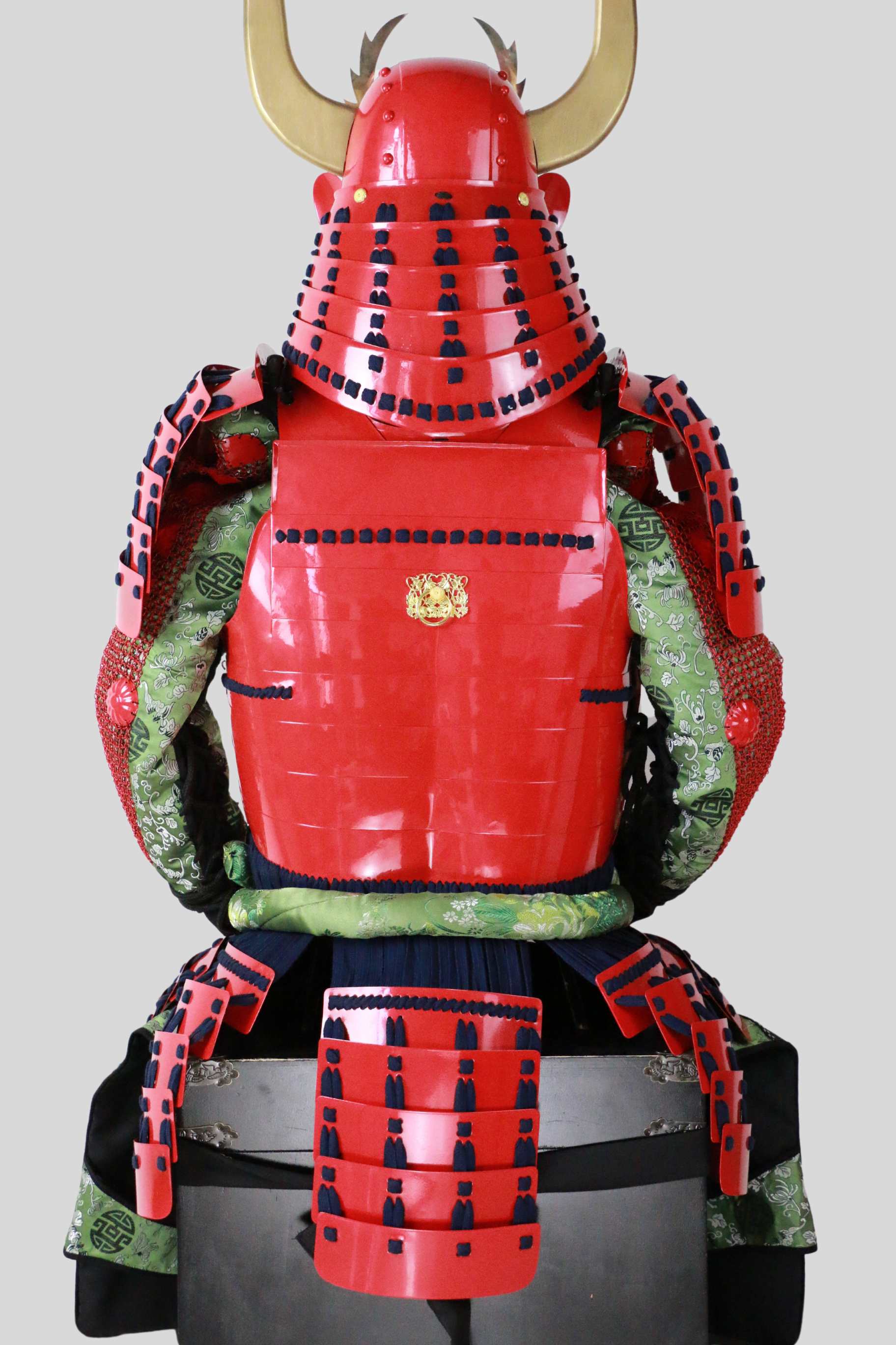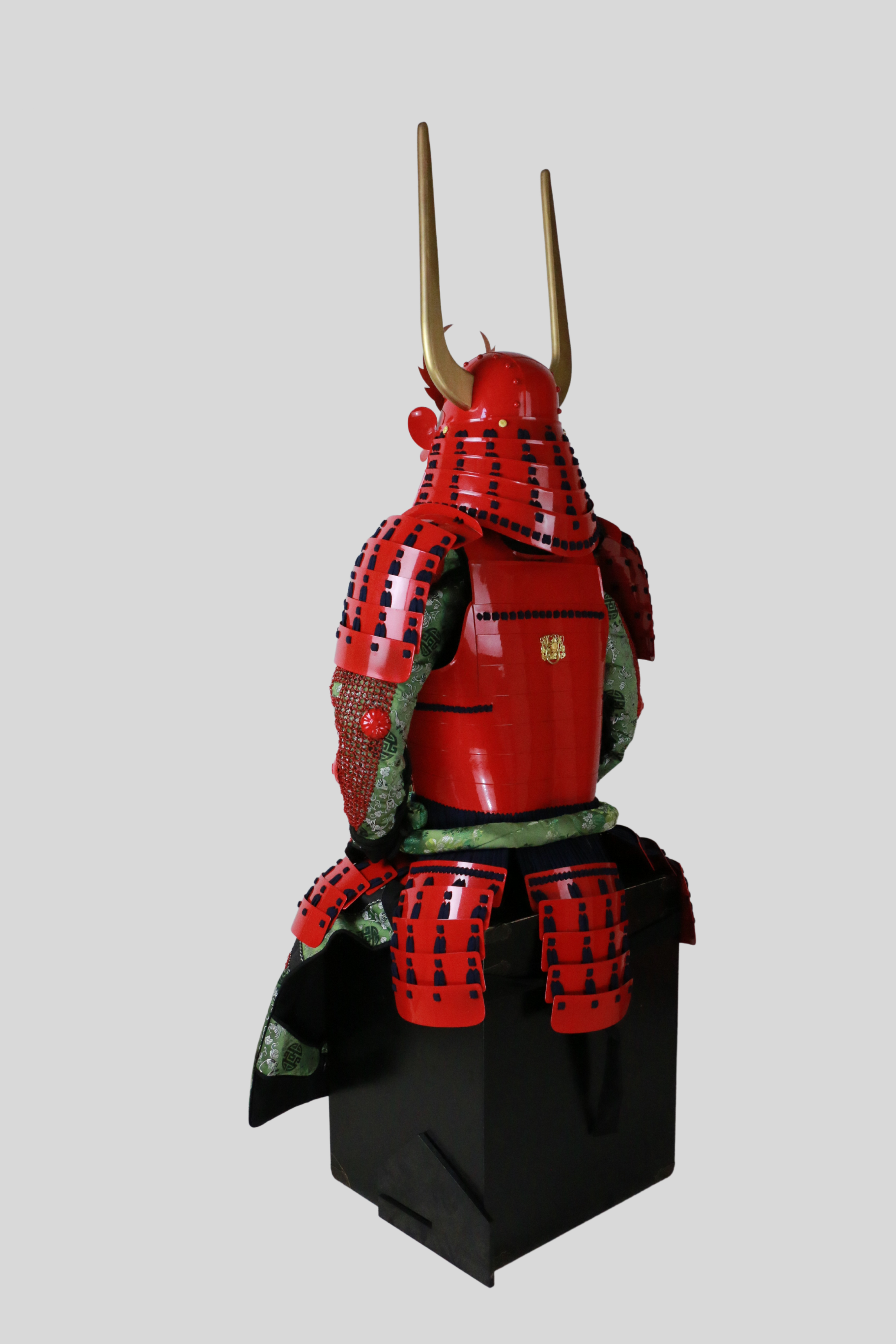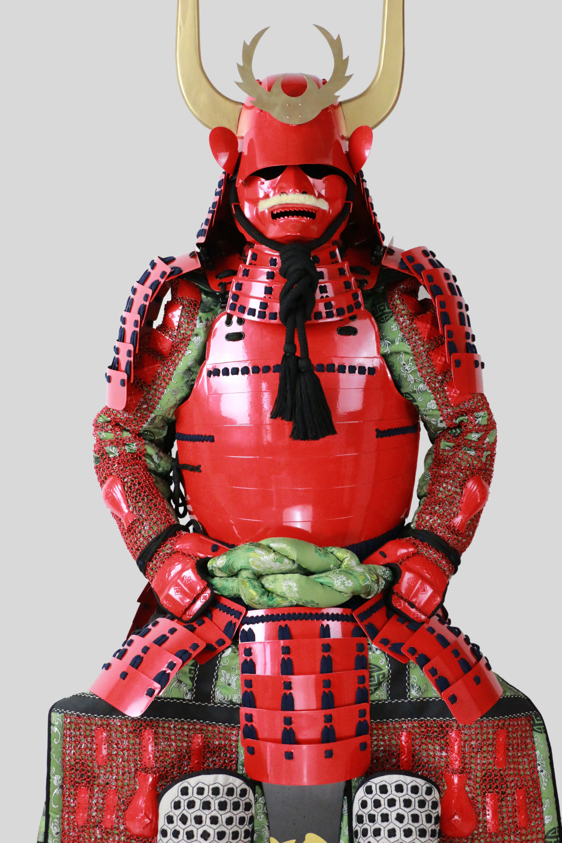 Les troupes de Naomasa, vêtues d'armures d'un rouge éclatant, étaient surnommées les « Diables Rouges » du champ de bataille. Son apparence intimidante lui valut le surnom redoutable d' Akaoni – l'Ogre Rouge . La palette de couleurs flamboyantes, inspirée des Takeda, était conçue pour semer la terreur chez les ennemis avant même que les épées ne soient dégainées. Les imposantes cornes dorées du kabuto symbolisent la puissance et la domination, complétant la présence du guerrier, impossible à ignorer.